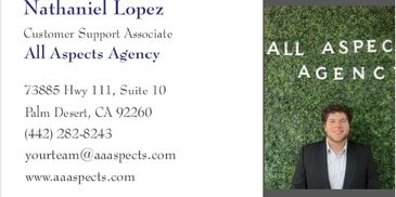 With five years of experience in the customer service industry, Nate has developed a deep understanding of the needs clients have in receiving exceptional service. He enjoys creating memorable experiences & interactions with clients. Throughout his career, Nate has learned the importance of effective communication and problem solving to best expedite your needs. Nate enjoys being a part of All Aspects Agency and loves being your Customer Service Advocate!
